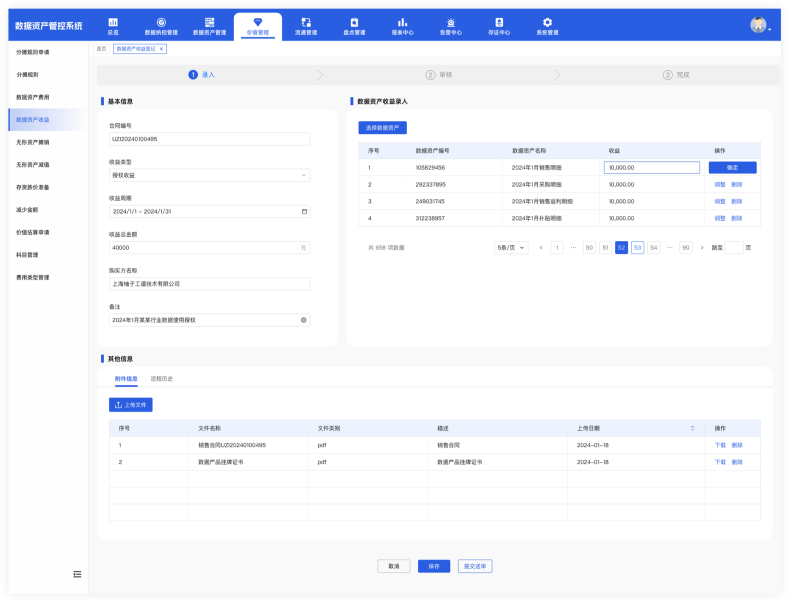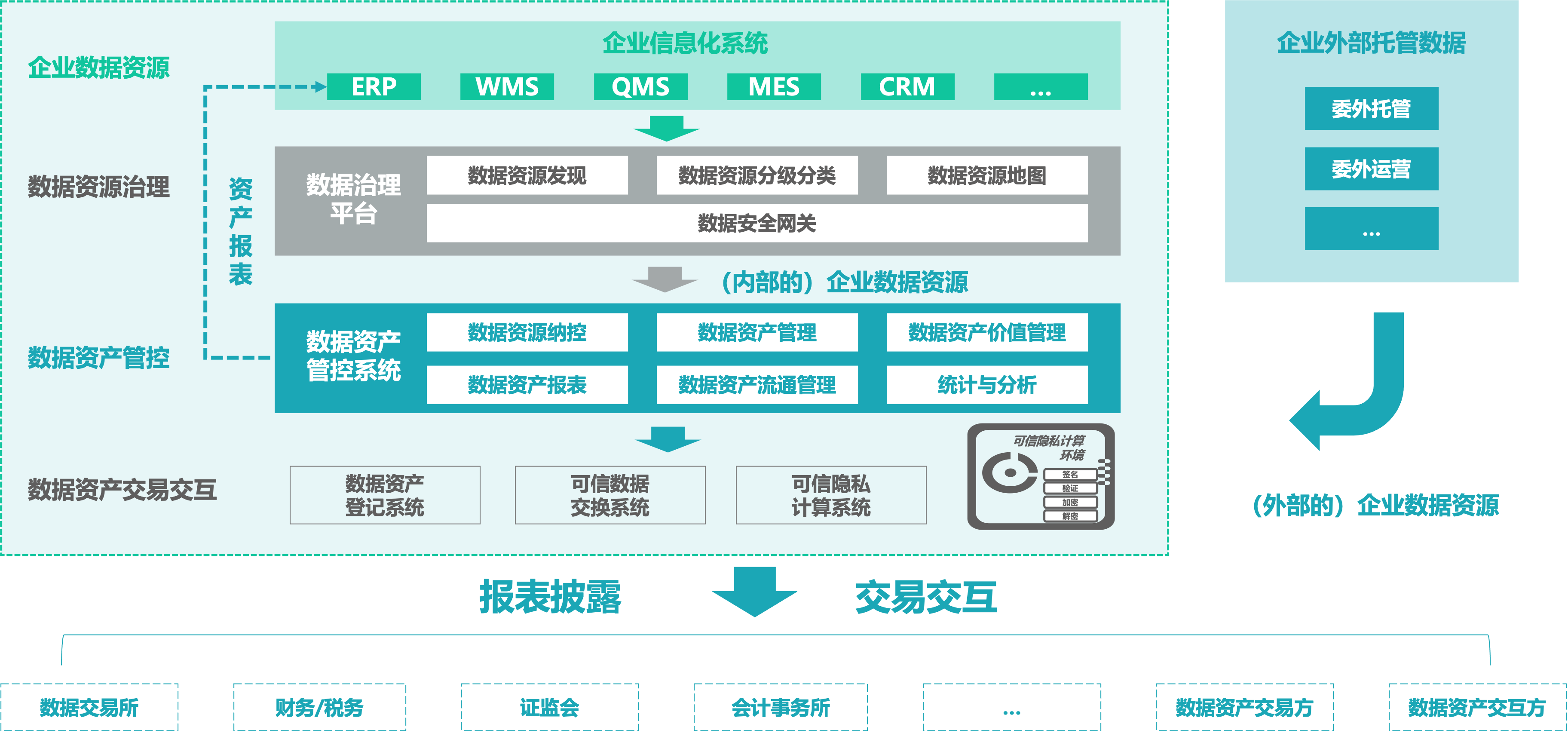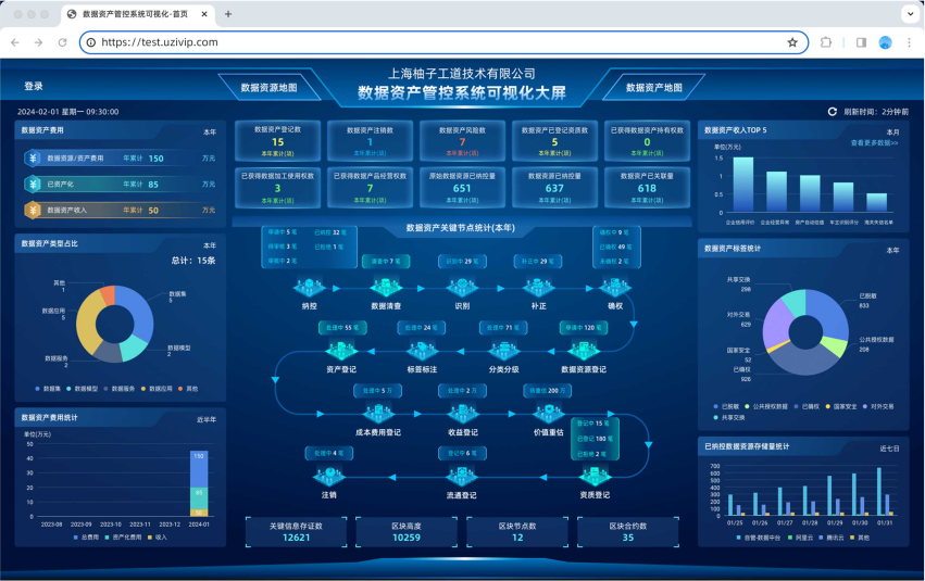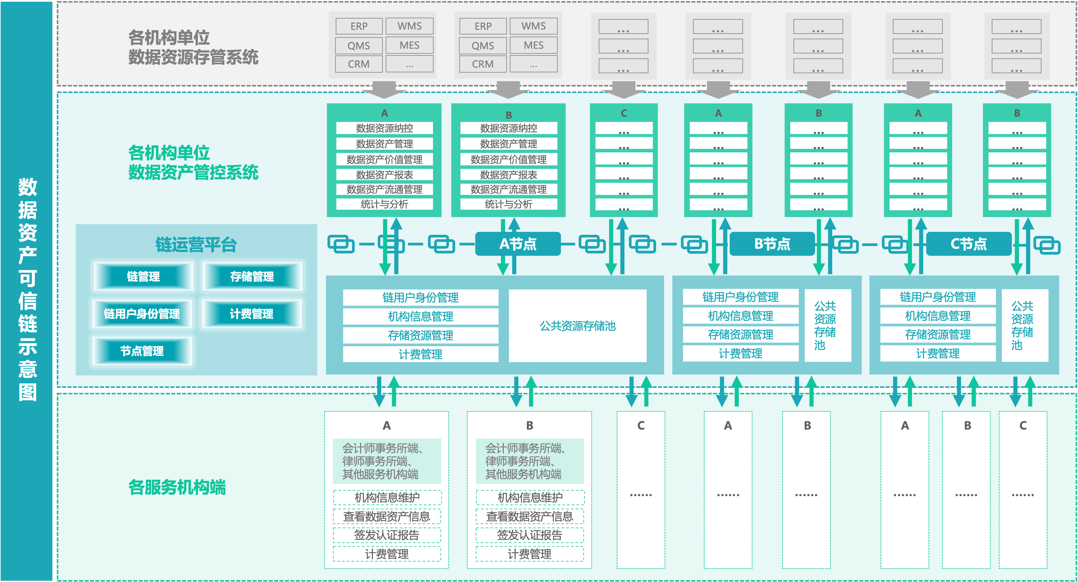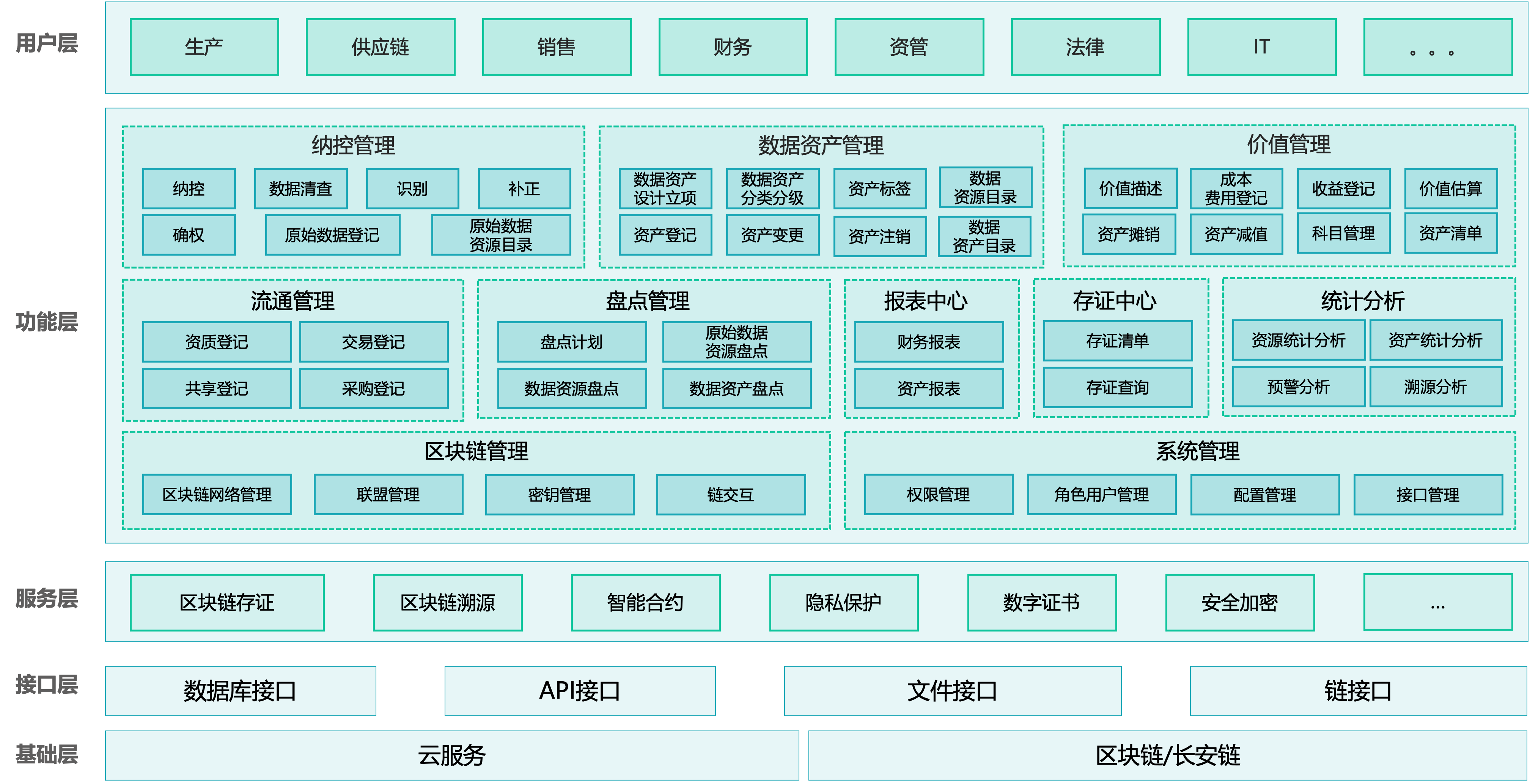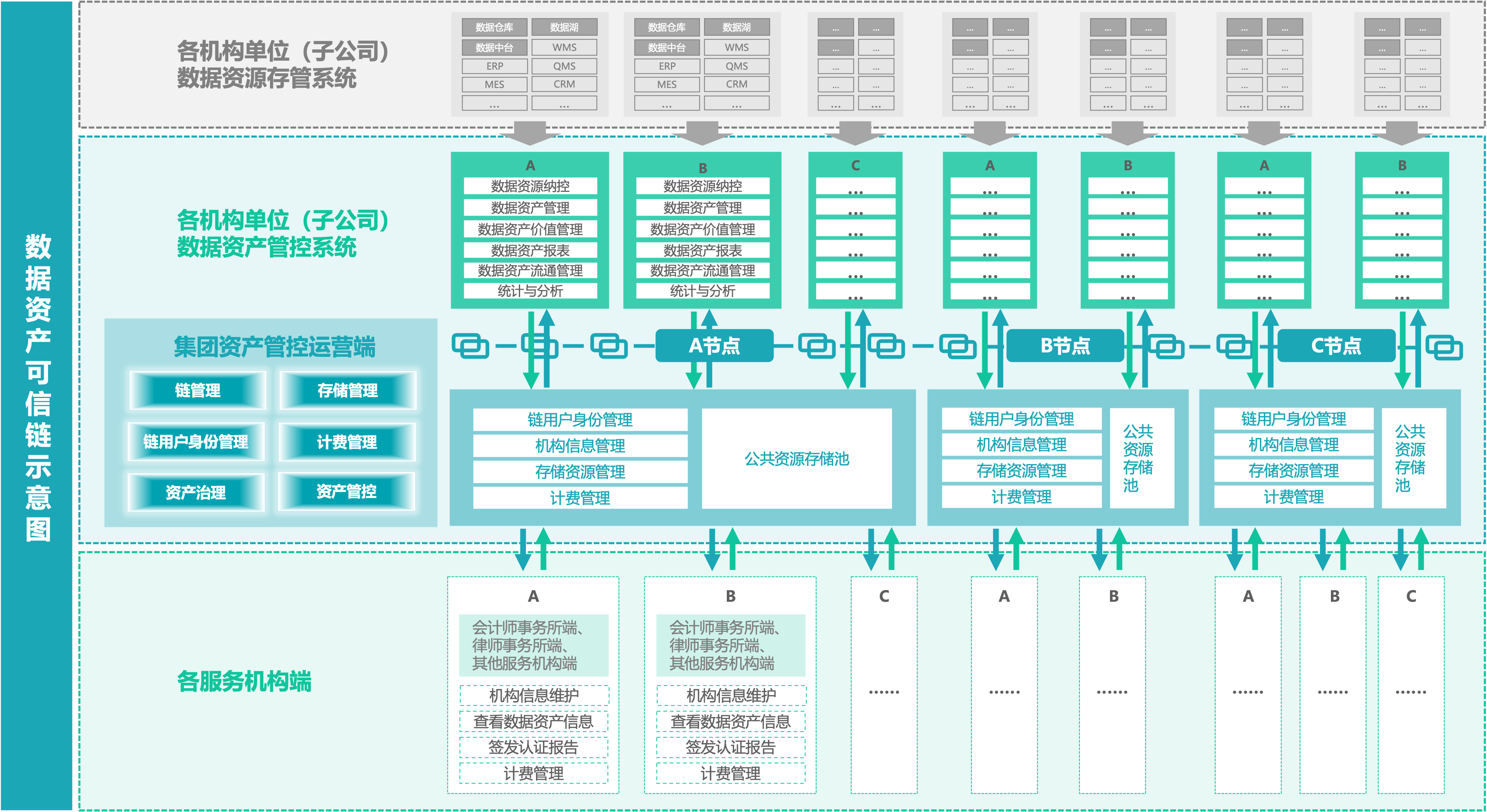 數據資產管控系統,也可以簡稱為數據資產ERP,是基于區塊鏈技術,滿足企業、機構的數據資產化全生命周期管控的管理系統,覆蓋了包括數據資源化、數據資產化、數據資本化三個階段,數據資源梳理、數據治理、數據產品設計、數據價值管理、數據資產登記掛牌數據流通和資本化六個節點的相關流程和功能;通過底層區塊鏈技術的分布式賬本特性,將數據資產化全生命周期過程中的關鍵信息上鏈存證、不可篡改,實現了數據資產的“可見、可證、可溯、可信”;數據資產管控系統,是以資產治理為主視角實現數據資產的管理,與傳統以數據或安全為視角的數據資源治理有根本上的差別。